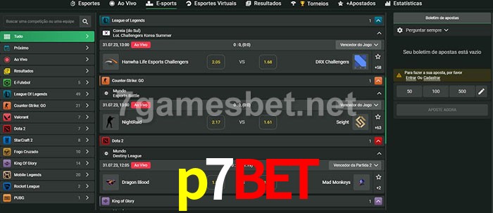 O p7bet oferece uma grande seleção de opções de apostas em e-sports com probabilidades competitivas